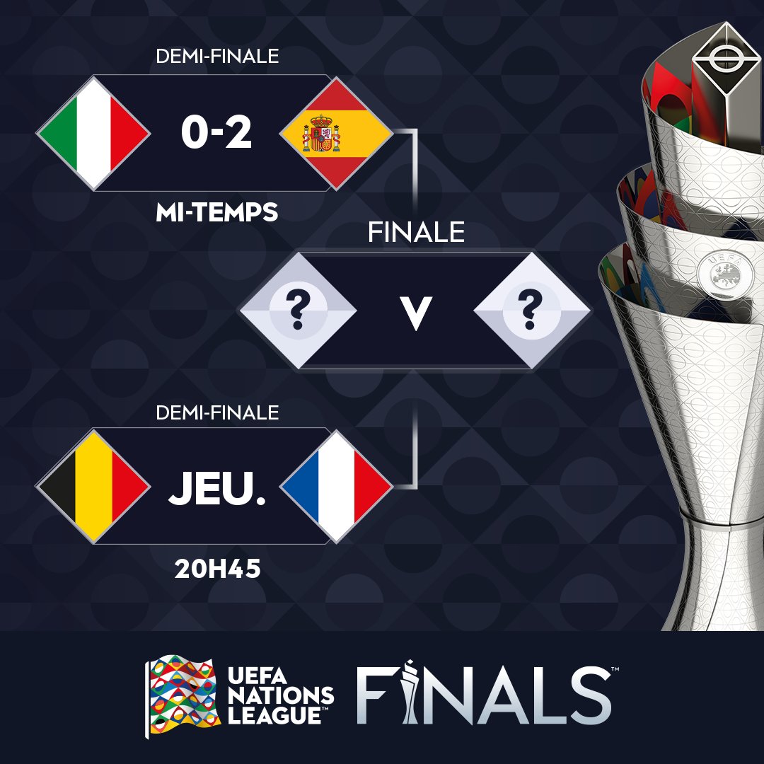 The 2021 UEFA Nations League final will be contested by Italy or Spain and Belgium or France with the line-up confirmed after the second. Demi-finale de Nations League 07 OCTOBRE 2021 Kzegamoda.